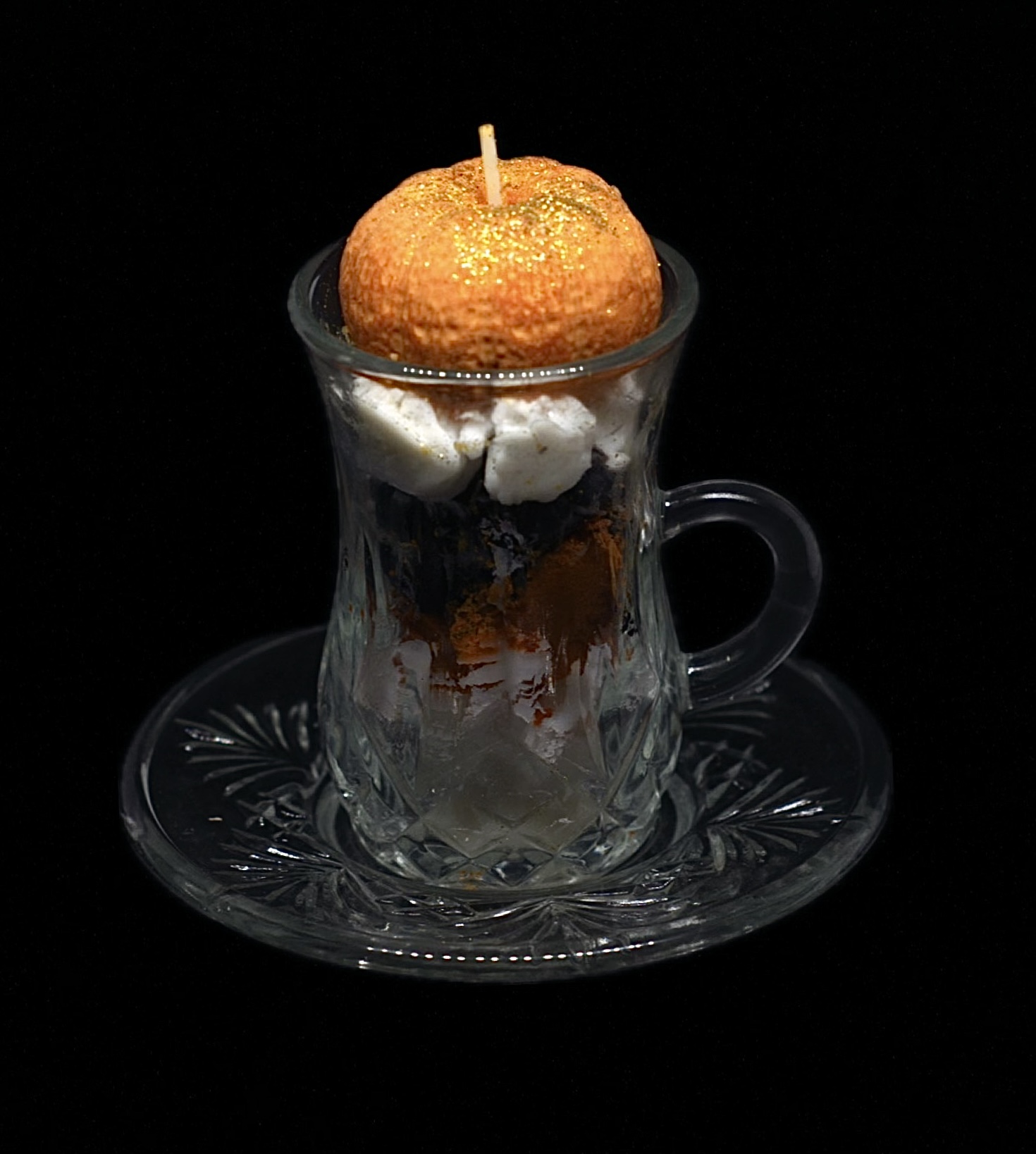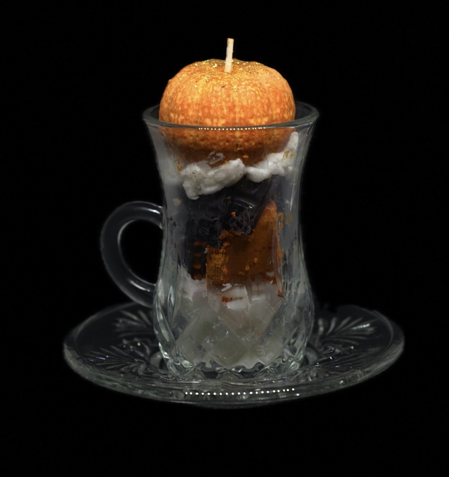 • Coulée dans une tasse à thé en verre épais, à conserver et réutiliser après nettoyage pour prolonger l’expérience bien au-delà de la flamme
